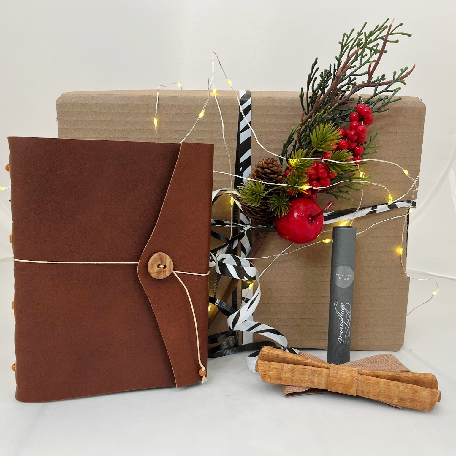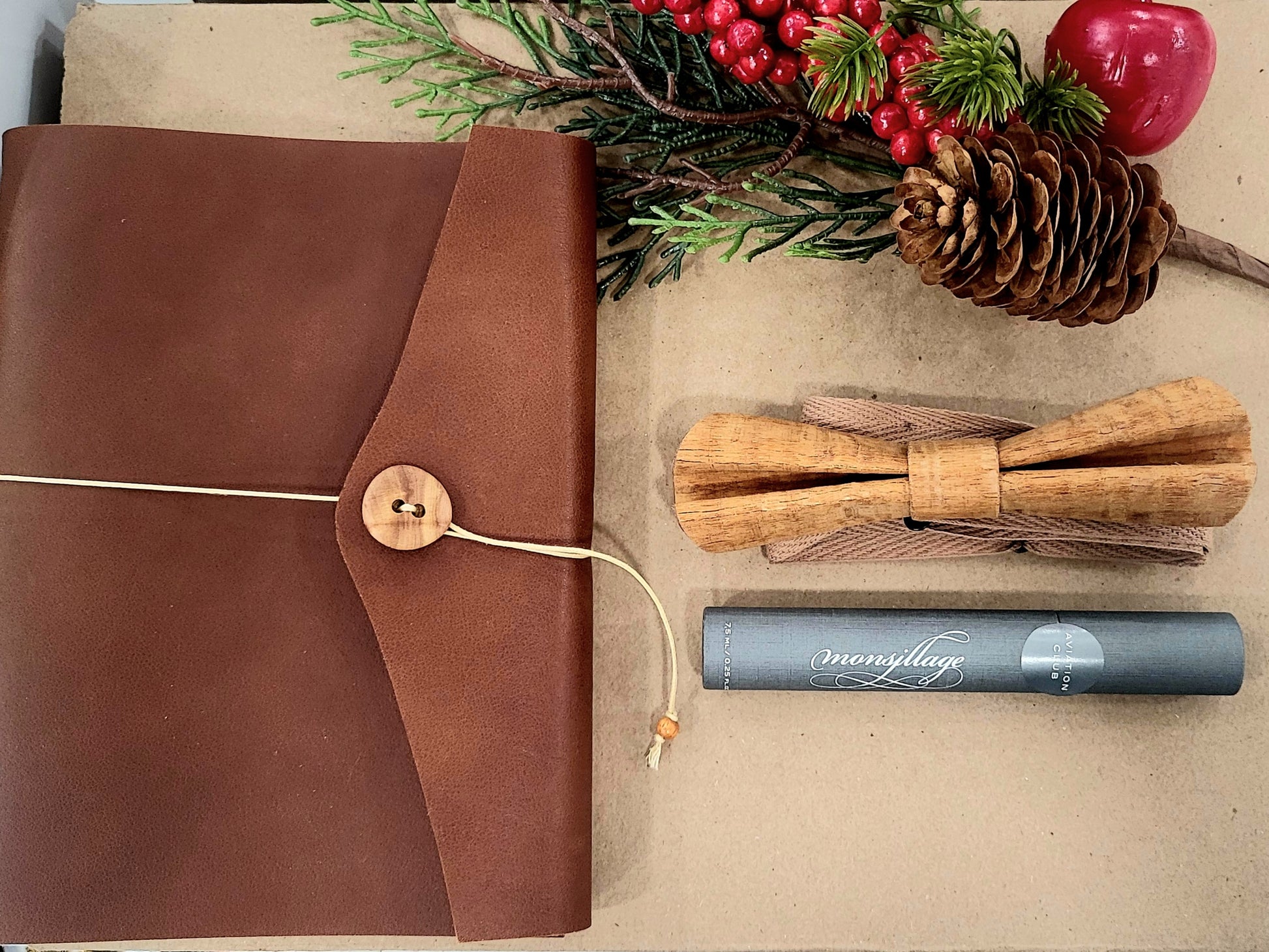 Ensemble raffiné pour homme - Journal de cuir, nœud papillon en bois et eau de toilette
