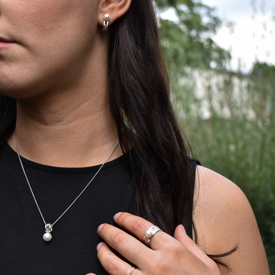 Pendentif Victoria en argent et perle blanche - Rose Perle